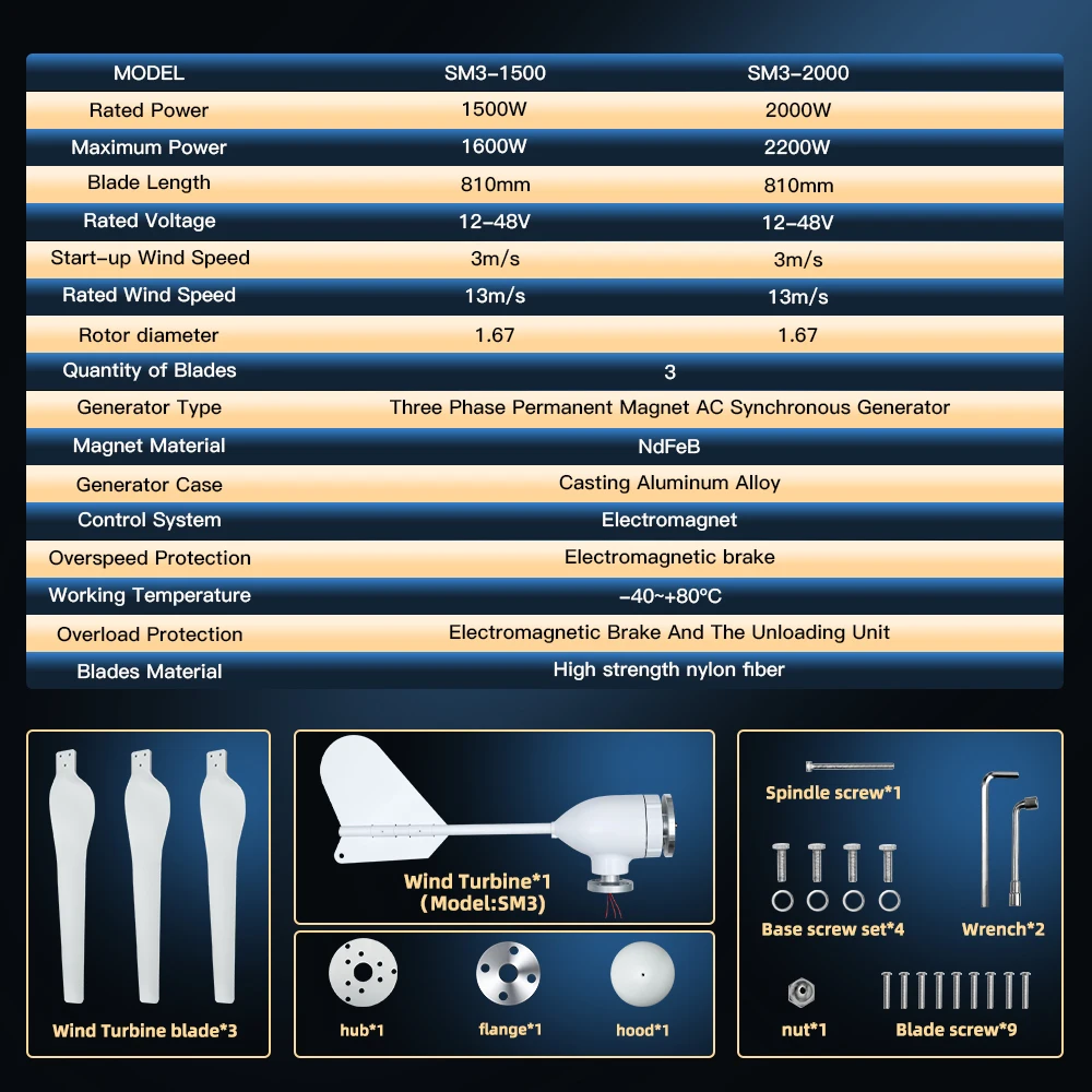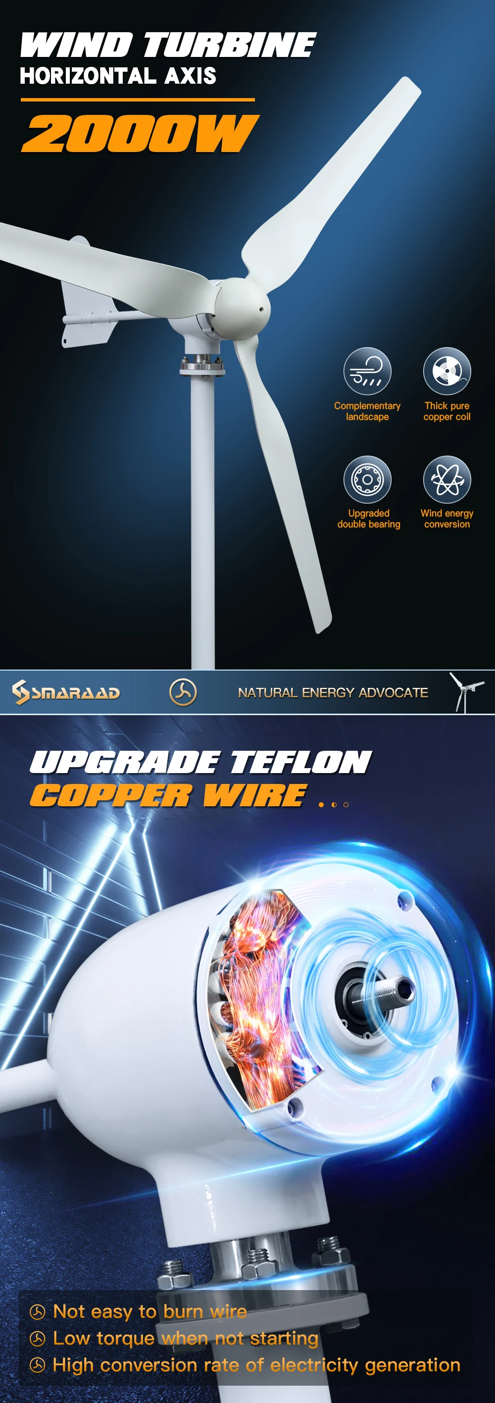 2KW/hTurbina horizontal 12V/24V/48V Controlador sin ruido recientemente actualizado